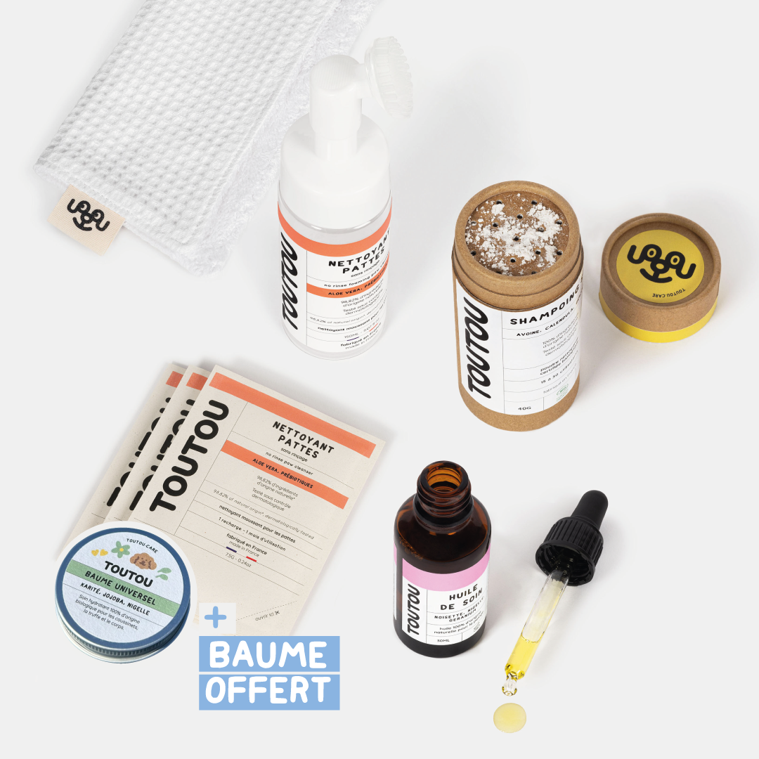 – OFFERT dans le pack : Baume hydratant pour les papattes irritées (valeur 19€)